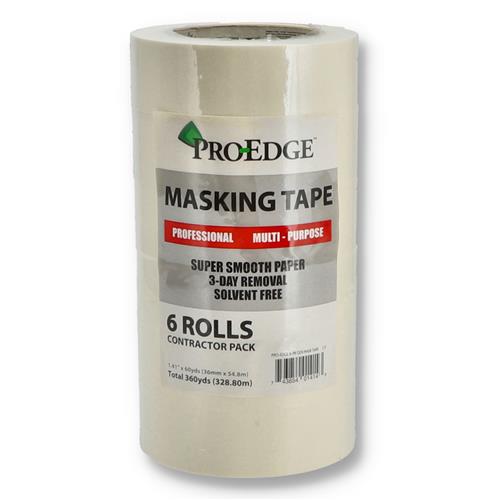 PRO-EDGE 6PK 1.41''x 60 YARD WHITE MASKING TAPE